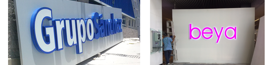 Letras individuales con frente de acrílico canto en aluminio con doble iluminación directa e indirecta con vinil frontal traslucido.